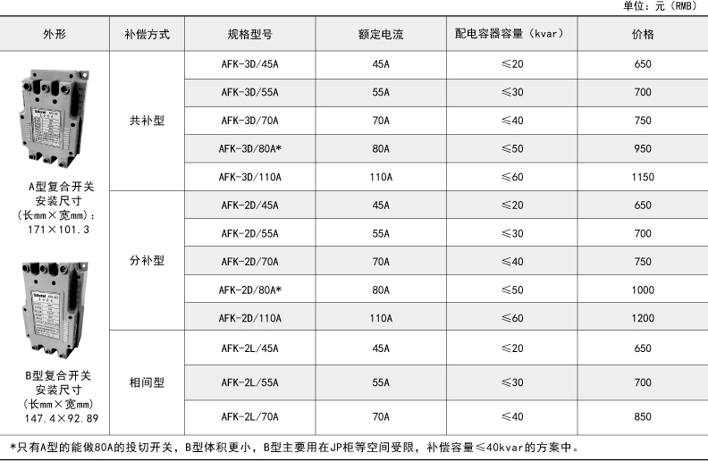 補(bǔ)償容量:≤20kvar