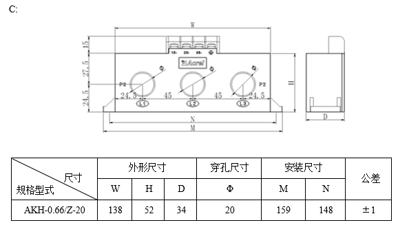 AKH-0.66 Z系列三相電流互感器產(chǎn)品外形美觀,接線方便。外殼材料可選用耐高溫增強尼龍、阻燃PC/ABS合金,作為交流電流信號采集元件,一般與AMC16、PZ-3O0配套使用,可減小電流互感器安裝空間和接線的煩瑣,為用戶降低成本。