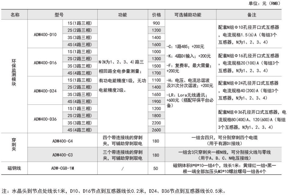 產(chǎn)品簡介:ADW400環(huán)保監(jiān)測模塊主要用于計(jì)量低壓網(wǎng)絡(luò)的三相有功電能,同時(shí)可選擇四個(gè)回路的電流輸入,具有RS485通訊和470MHz無線通訊功能,方便用戶進(jìn)行用電監(jiān)測、集抄和管理。可靈活安裝于配電箱內(nèi),實(shí)現(xiàn)對(duì)不同區(qū)域和不同負(fù)荷的分項(xiàng)電能計(jì)量,統(tǒng)計(jì)和分析。