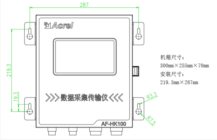 AF-HK100 污染源在線自動(dòng)監(jiān)控(監(jiān)測(cè))數(shù)據(jù)采集傳輸儀是應(yīng)環(huán)保領(lǐng)域各級(jí)國(guó)控、省控 及市控污染源環(huán)境在線監(jiān)控(監(jiān)測(cè))系統(tǒng)的需求而開發(fā)研制的產(chǎn)品,通過模擬通道、開關(guān)通 道、數(shù)字通道(RS232/485/LoRa)與前端各類監(jiān)測(cè)儀器/儀表實(shí)現(xiàn)無(wú)縫連接,進(jìn)行本地?cái)?shù)據(jù) 采集、存儲(chǔ)、處理與展示,并通過 4G/有線等網(wǎng)絡(luò)將數(shù)據(jù)遠(yuǎn)傳至監(jiān)控中心。