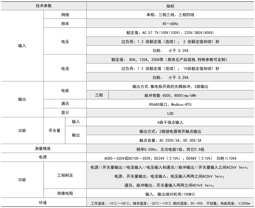 它集成全部電力參數(shù)的測(cè)量(如單相或者三相的電流、電壓、有功功率、無功功率、視在功率、頻率、功率因數(shù)等)、復(fù)費(fèi)率電能計(jì)量、四象限電能計(jì)量、諧波分析以及電能監(jiān)測(cè)和考核管理。多種外圍接口功能:帶有RS485/MODBUS-RTU協(xié)議;帶開關(guān)量輸入和繼電器輸出可實(shí)現(xiàn)斷路器開關(guān)的“遙信”和“遙控”的功能,采用LCD顯示界面,通過面板按鍵來實(shí)現(xiàn)參數(shù)設(shè)置和控制,非常適合于實(shí)時(shí)電力監(jiān)控系統(tǒng)。
