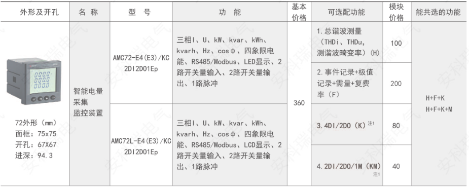 AMC 系列可編程智能電測儀表是針對電力系統(tǒng)、工礦企業(yè)、公用設(shè)施、智能大廈的電力監(jiān)控需求而設(shè)計的智能儀表,它集成電力參數(shù)的測量(如單相或者三相的電流、電壓、有功功率、無功功率、視在功率、頻率、功率因數(shù))以及電能監(jiān)測和考核管理。采用高亮度 LED/LCD 顯示界面,通過按鍵來實現(xiàn)參數(shù)設(shè)置和控制,非常適用于實時電力監(jiān)控系統(tǒng)??梢灾苯尤〈R?guī)電力變送器及測量儀表。作為一種智能化、數(shù)字化的前端采集元件,該儀表已廣泛應(yīng)用于各種控制系統(tǒng)、SCADA 系統(tǒng)和能源管理系統(tǒng)中。