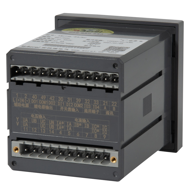 它集成全部電力參數(shù)的測量(如單相或者三相的電流、電壓、有功功率、無功功率、視在功率、頻率、功率因數(shù)等)、復(fù)費率電能計量、四象限電能計量、諧波分析以及電能監(jiān)測和考核管理。多種外圍接口功能:帶有RS485/MODBUS-RTU協(xié)議;帶開關(guān)量輸入和繼電器輸出可實現(xiàn)斷路器開關(guān)的“遙信”和“遙控”的功能,采用LCD顯示界面,通過面板按鍵來實現(xiàn)參數(shù)設(shè)置和控制,非常適合于實時電力監(jiān)控系統(tǒng)。