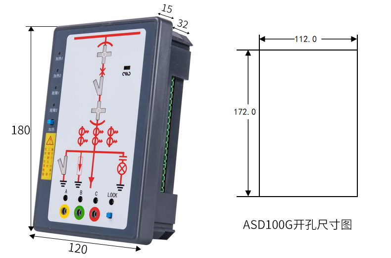 ASD系列開(kāi)關(guān)柜綜合測(cè)控裝置具有一次回路模擬圖及開(kāi)關(guān)狀態(tài)指示、高壓帶電顯示、自動(dòng)溫濕度控制、人體感應(yīng)自動(dòng)照明、語(yǔ)音提示、電參數(shù)測(cè)量及RS485通訊接口等功能,集操作、顯示于一體,直觀地體現(xiàn)柜內(nèi)元件的工作狀態(tài)及工作環(huán)境。