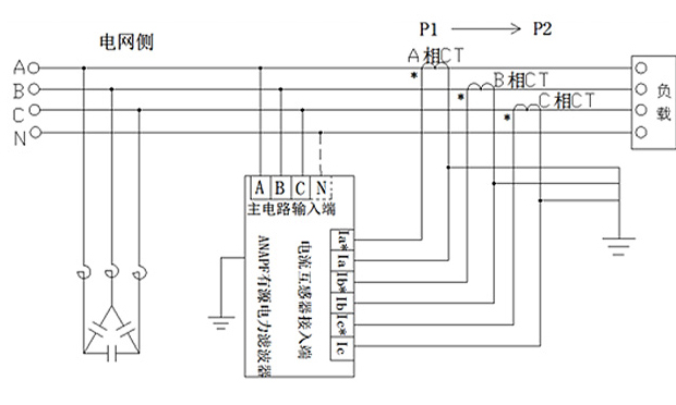 ANAPF系列有源電力濾波器通過電流互感器采集系統(tǒng)諧波電流,經(jīng)控制器快速計算并提取各次諧波電流的含量,產(chǎn)生諧波電流指令,通過功率執(zhí)行器件產(chǎn)生與諧波電流幅值相等方向相反的補償電流,并注入電力系統(tǒng)中,從而抵消非線性負載所產(chǎn)生的諧波電流。