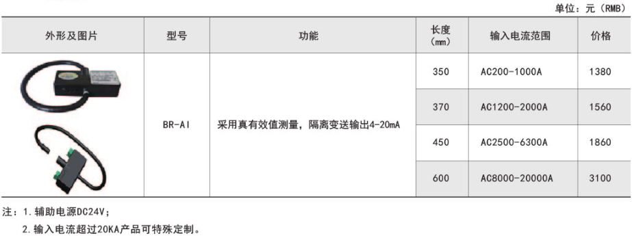 技術(shù)要求:輸入電流AC1000A;輸出DC4-20mA;準(zhǔn)確級(jí)0.5;長(zhǎng)度350mm。