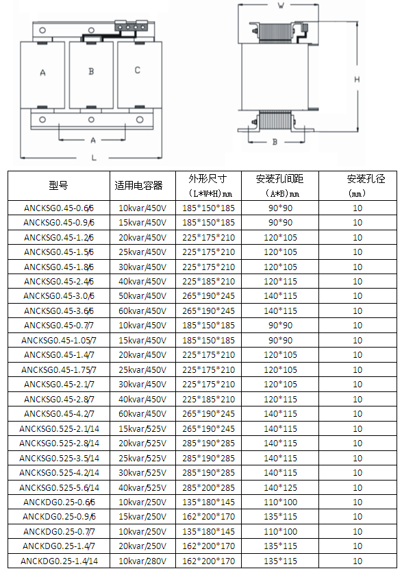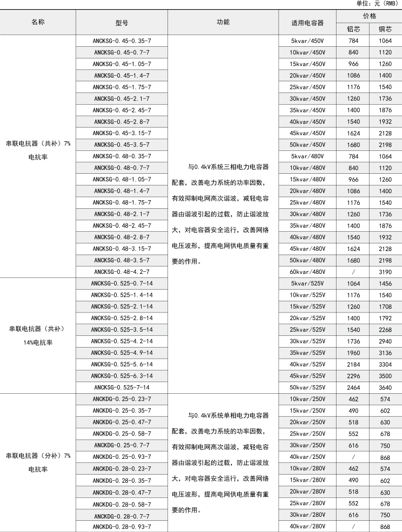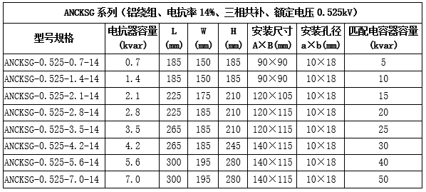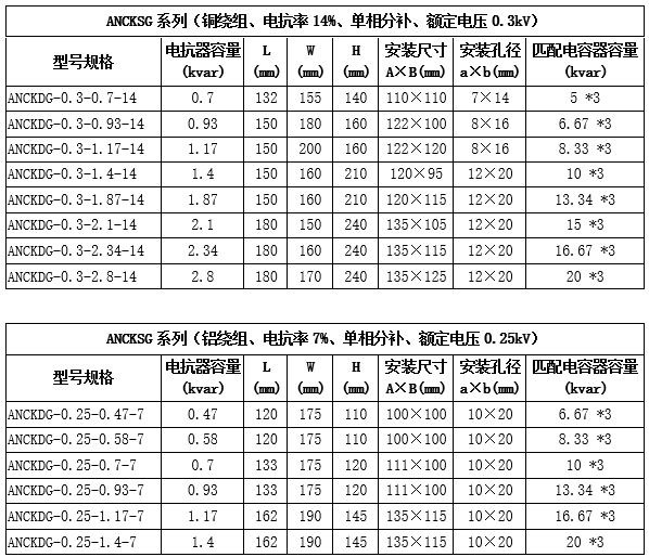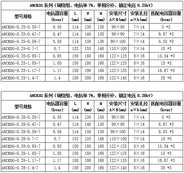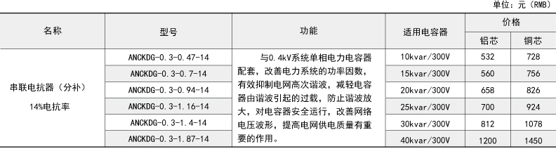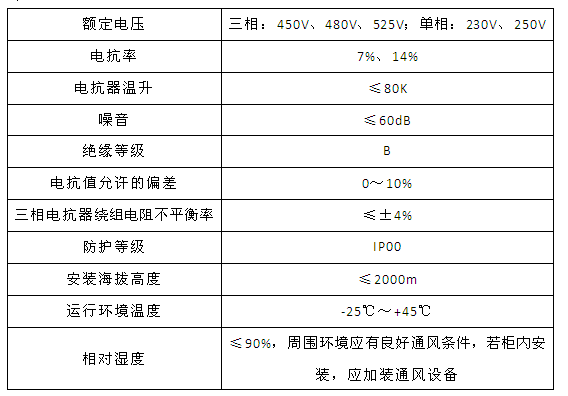 技術(shù)要求:適用電容器5kVAR;7%電抗率;銅芯