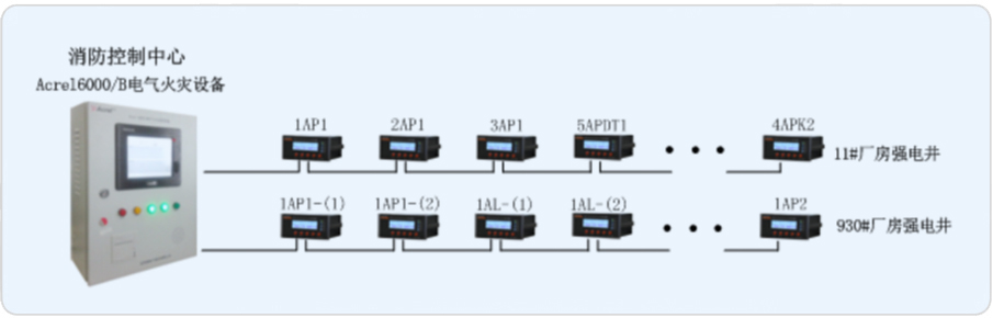 我司承接其電氣火災(zāi)系統(tǒng)的搭建,對安裝于廠房配電箱進(jìn)線處的剩余電流火災(zāi)探測器設(shè)計(jì)一套Acrel-6000/B電氣火災(zāi)系統(tǒng),由此來實(shí)時(shí)監(jiān)測廠房內(nèi)重要回路的漏電流,以確保廠房配電系統(tǒng)的電氣安全。
