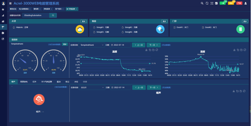 該項(xiàng)目工1個(gè)變電所和10個(gè)樓層配電間。安科瑞提供的電能管理系統(tǒng)解決方案包括:8只ARCM300T-Z,50只DTSY1352-F,150只AMC-72,1個(gè)遙控單元ARTU-16,6個(gè)攝像頭,溫控儀2臺(tái),1臺(tái)溫濕度記錄儀。遙控單元ARTU-16里包括:煙感,門磁,水浸。