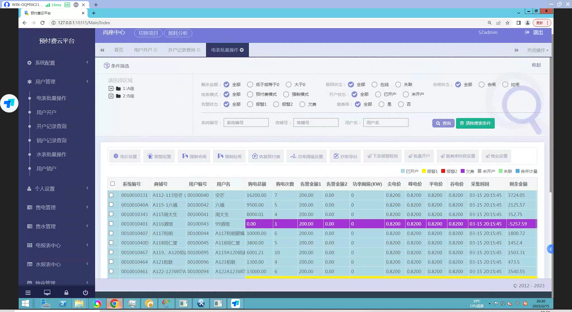 新華尚座項(xiàng)目體量8萬(wàn)方,該項(xiàng)目將商場(chǎng)的商戶(hù)用電接入預(yù)付費(fèi)云平臺(tái),共7層,每層電表安裝在配電箱,水表通訊線(xiàn)就近拉線(xiàn)到電井。所有通訊線(xiàn)通過(guò)電井匯集在負(fù)一層接入采集器,采集器將數(shù)據(jù)采集處理,通過(guò)內(nèi)部網(wǎng)絡(luò)傳輸?shù)皆破脚_(tái)。