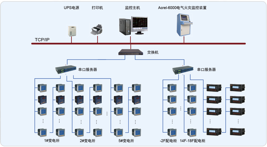 Acrel-6000電氣火災監(jiān)控系統(tǒng)是安科瑞電氣股份有限公司自主研發(fā)的用于接收剩余電流式電氣火災探測器等現(xiàn)場設備信號,以實現(xiàn)對被保護電氣線路的報警、監(jiān)視、控制、管理的運行于計算機的工業(yè)級硬件/軟件系統(tǒng)。本系統(tǒng)應用于大型商場、生活小區(qū)、生產(chǎn)基礎、辦公大樓、商場酒店等區(qū)域的消防控制中心,對分散在建筑內(nèi)的探測器進行遙測、遙調(diào)、遙控、遙信,方便實現(xiàn)監(jiān)控與管理。本系統(tǒng)采用標準的Modbus現(xiàn)場總線將具有通信功能的探測器相互連接起來,當現(xiàn)場保護線路中的被探測參數(shù)超過報警設定值時,能發(fā)出報警信號、控制信號,能指示報警部位并保存報警信息。