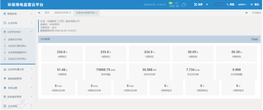 企業(yè)設(shè)施運行數(shù)據(jù):展示接入平臺的生產(chǎn)點位以及關(guān)聯(lián)的治理點位各個時間點的數(shù)據(jù)上報情況。
