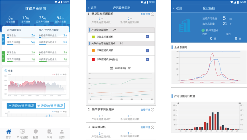 用電統(tǒng)計:以曲線圖的方式展示今日空氣質(zhì)量與企業(yè)生產(chǎn)用電趨勢的對比,以及昨日和今日企業(yè)總用電情況。