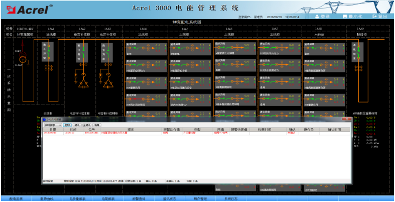 系統(tǒng)具有實(shí)時(shí)報(bào)警功能,系統(tǒng)能夠?qū)ε潆娀芈窋嗦菲?、隔離開(kāi)關(guān)、接地刀分、合動(dòng)作等遙信變位,保護(hù)動(dòng)作、事故跳閘,以及電壓、電流、功率、功率因數(shù)越限等事件進(jìn)行實(shí)時(shí)監(jiān)測(cè),并根據(jù)事件等級(jí)發(fā)出告警。系統(tǒng)報(bào)警時(shí)自動(dòng)彈出實(shí)時(shí)報(bào)警窗口,并發(fā)出聲音或語(yǔ)音提醒。