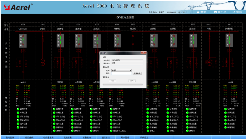 系統(tǒng)支持對(duì)斷路器、隔離開(kāi)關(guān)、接地刀等進(jìn)行分、合遙控操作。系統(tǒng)具有嚴(yán)格的密碼保護(hù)和操作權(quán)限管理功能,對(duì)于每次遙控操作,系統(tǒng)自動(dòng)生成操作記錄,記錄內(nèi)容包含操作人、操作時(shí)間、操作類(lèi)型等。實(shí)現(xiàn)該功能需要斷路器本身具有電操機(jī)構(gòu)及保護(hù)保測(cè)控裝置具備遙控功能等硬件設(shè)備的支。