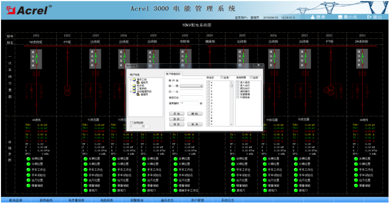系統(tǒng)為保障系統(tǒng)安全穩(wěn)定運(yùn)行,設(shè)置了用戶(hù)權(quán)限管理功能。通過(guò)用戶(hù)權(quán)限管理能夠防止未經(jīng)授權(quán)的操作(如配電回路名稱(chēng)修改等)。可以定義不同級(jí)別用戶(hù)的登錄名、密碼及操作權(quán)限,為系統(tǒng)運(yùn)行、維護(hù)、管理提供可靠的安全保障。