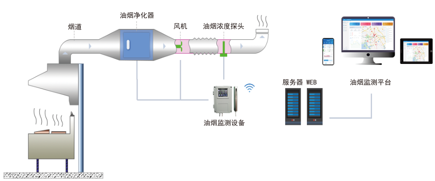 (4)監(jiān)察難度大:餐飲企業(yè)數(shù)量巨大,靠人力監(jiān)管無法實現(xiàn)全覆蓋;部分凈化設(shè)備安裝在天花板內(nèi)、高樓平臺等,導(dǎo)致監(jiān)管人員心有余力不足。