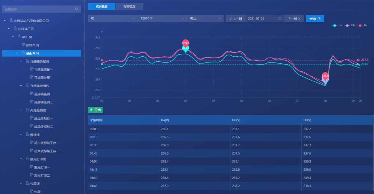 查詢各回路或設(shè)備指定時間的運(yùn)行參數(shù),報表中顯示電參量信息應(yīng)包括:各相電流、三相電壓、總功率因數(shù)、總有功功率、總無功功率、正向有功電能等.