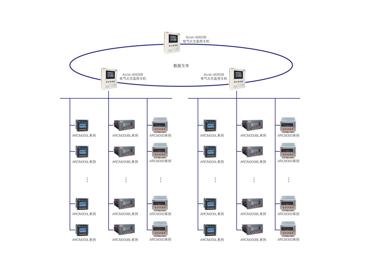 電氣火災(zāi)監(jiān)控系統(tǒng)作為火災(zāi)自動報(bào)警系統(tǒng)的預(yù)警子系統(tǒng),由電氣火災(zāi)監(jiān)控主機(jī)、電氣火災(zāi)監(jiān)控單元、剩余電流式電氣火災(zāi)探測器以及測溫式電氣火災(zāi)探測器組成,通過現(xiàn)場總線構(gòu)成一套完整的預(yù)防電氣火災(zāi)的監(jiān)控系統(tǒng),數(shù)據(jù)可集成至商業(yè)中心消控室監(jiān)控系統(tǒng)。