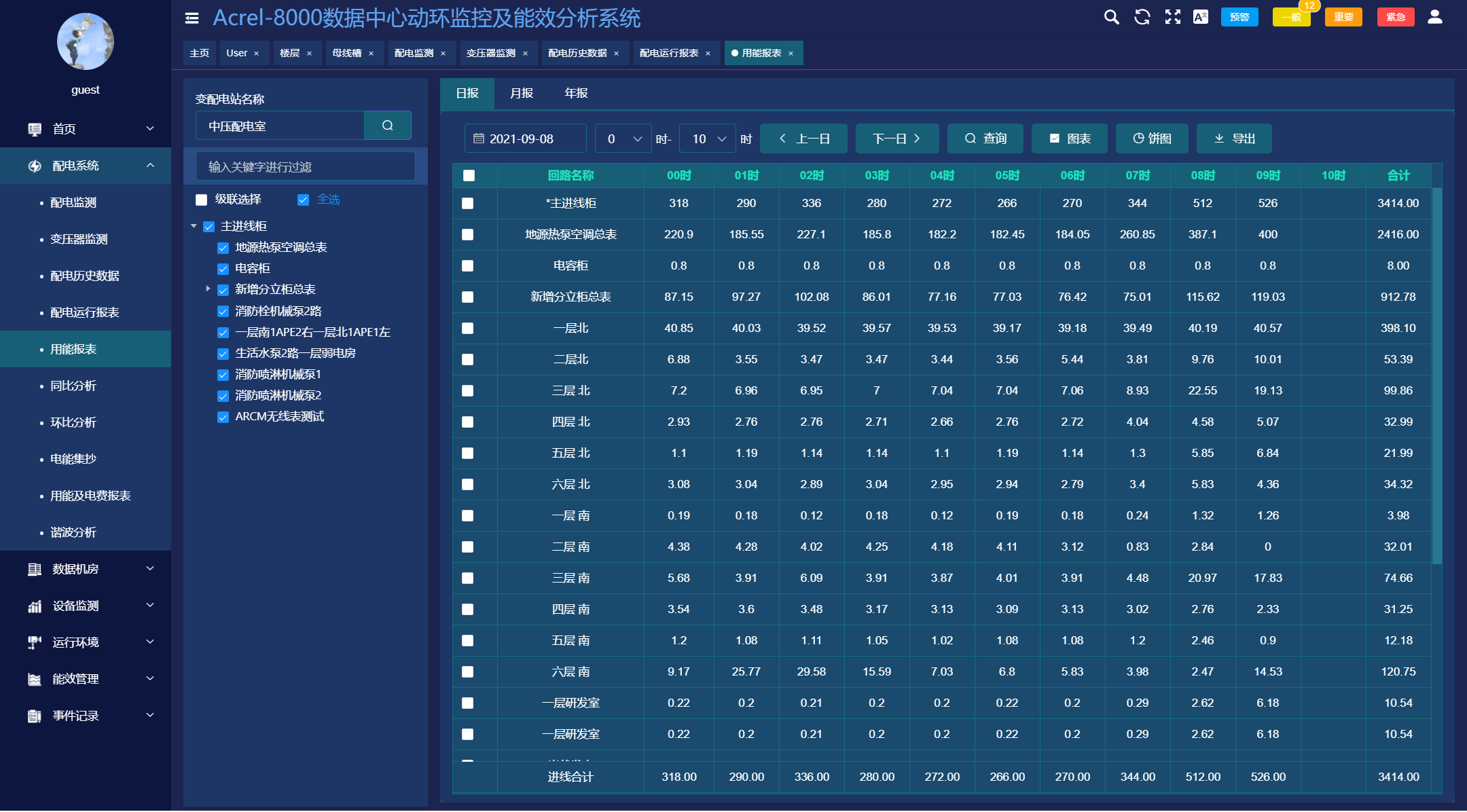 電力監(jiān)控系統(tǒng)以豐富的報(bào)表體支撐量體系的完整性。系統(tǒng)具備定時(shí)抄表匯總統(tǒng)計(jì)功能,用戶可以自由查詢自系統(tǒng)正常運(yùn)行以來(lái)任意時(shí)間段內(nèi)各配電節(jié)點(diǎn)的用電情況,即該節(jié)點(diǎn)進(jìn)線用電量與各分支回路消耗電量的統(tǒng)計(jì)分析報(bào)表。